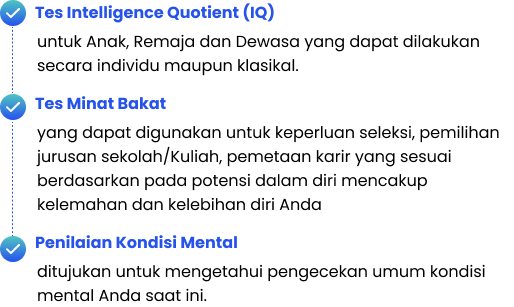 ISOKE menyediakan berbagai macam layanan asesmen psikologi yang dapat disesuaikan dengan keperluan Anda.
